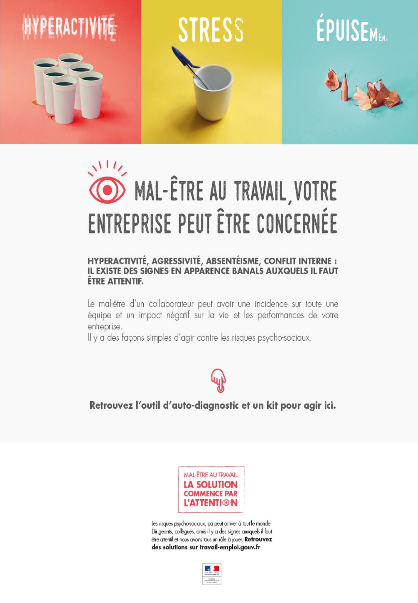 Participation à la campagne contre les risques psychosociaux au travail pour le Ministère du Travail, de l'Emploi et de l'Insertion.
